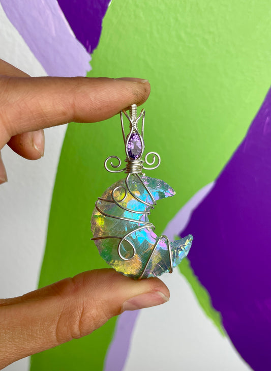 Luxe Luna Necklace Mini and Original: Angel Aura Opalite & Amethyst in Sterling Silver