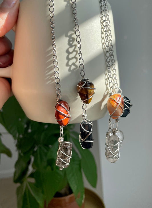 Tiger’s Eye & Real Maple Leaf Necklace: Copper
