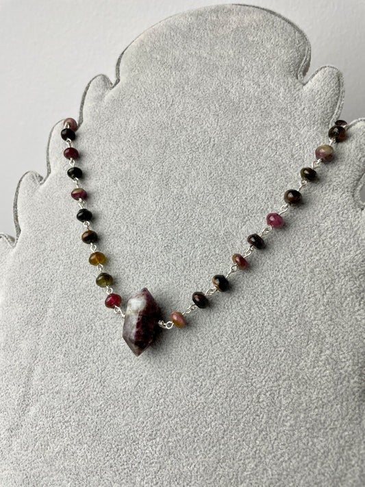 Tiger's Obsidian & Chalcedony Monstera Leaf Necklace in Antique Copper