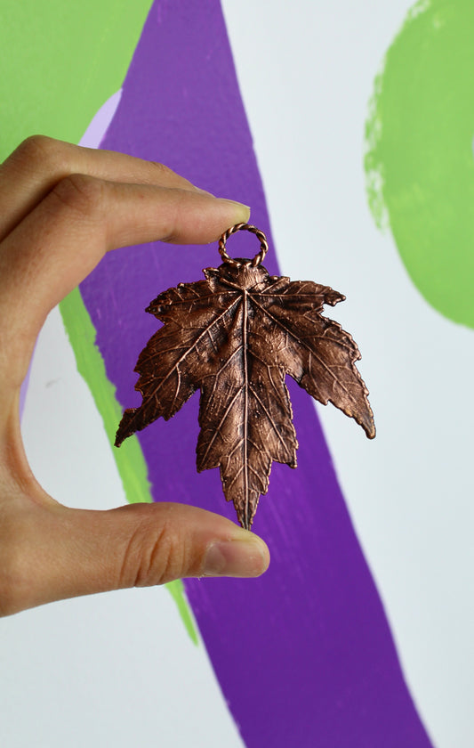 Tiger’s Eye & Real Maple Leaf Necklace: Copper