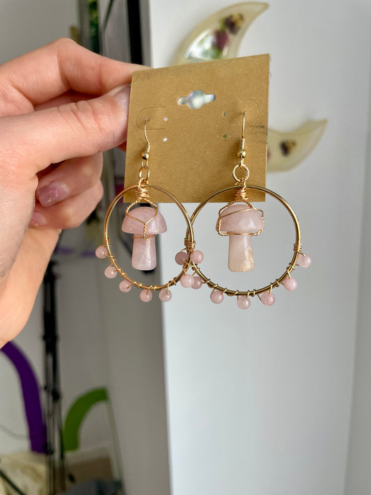 Golden Gemstone Mushroom Earrings