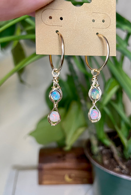 Double Opal Hoops: 14k Gold Fill