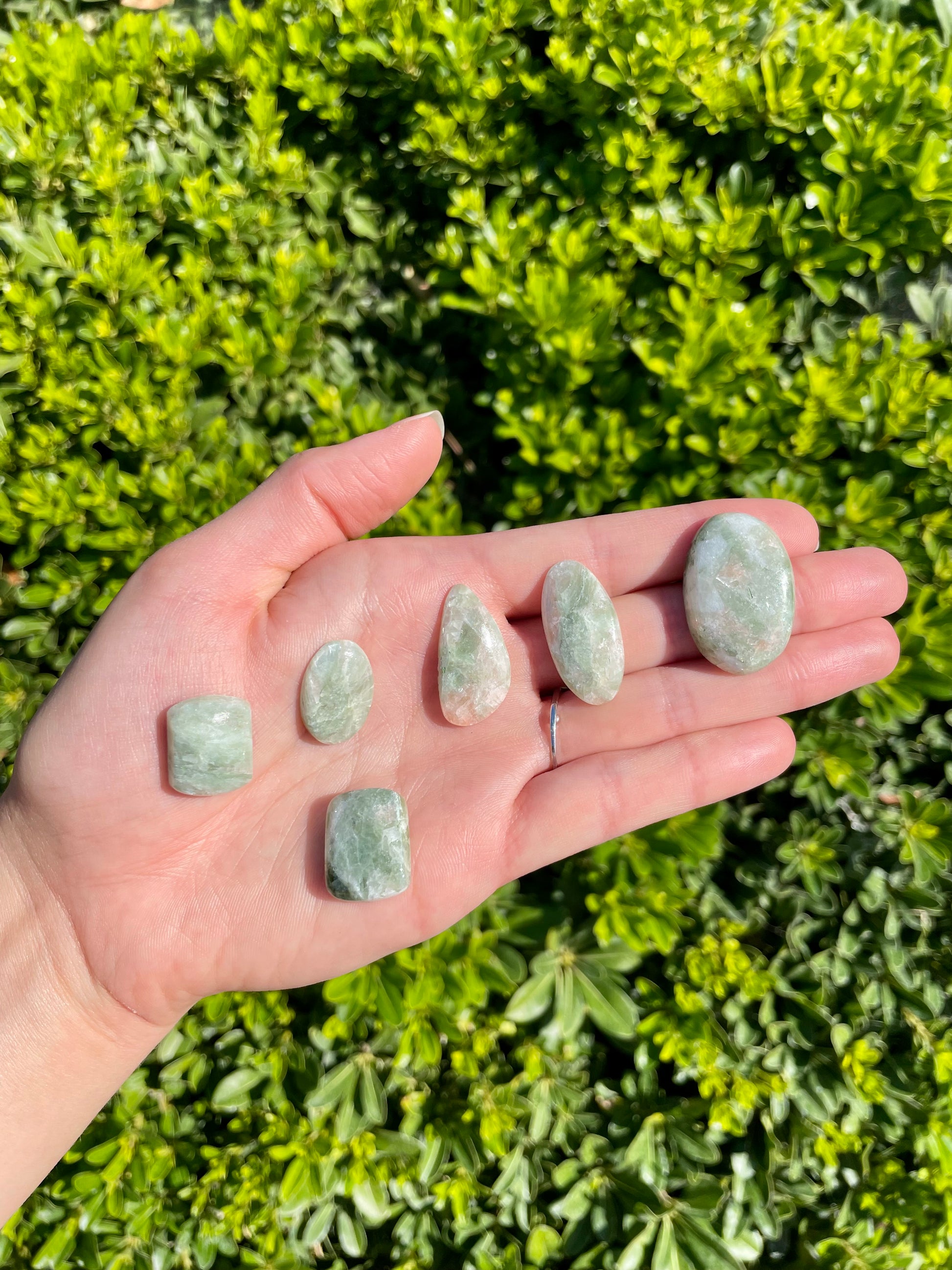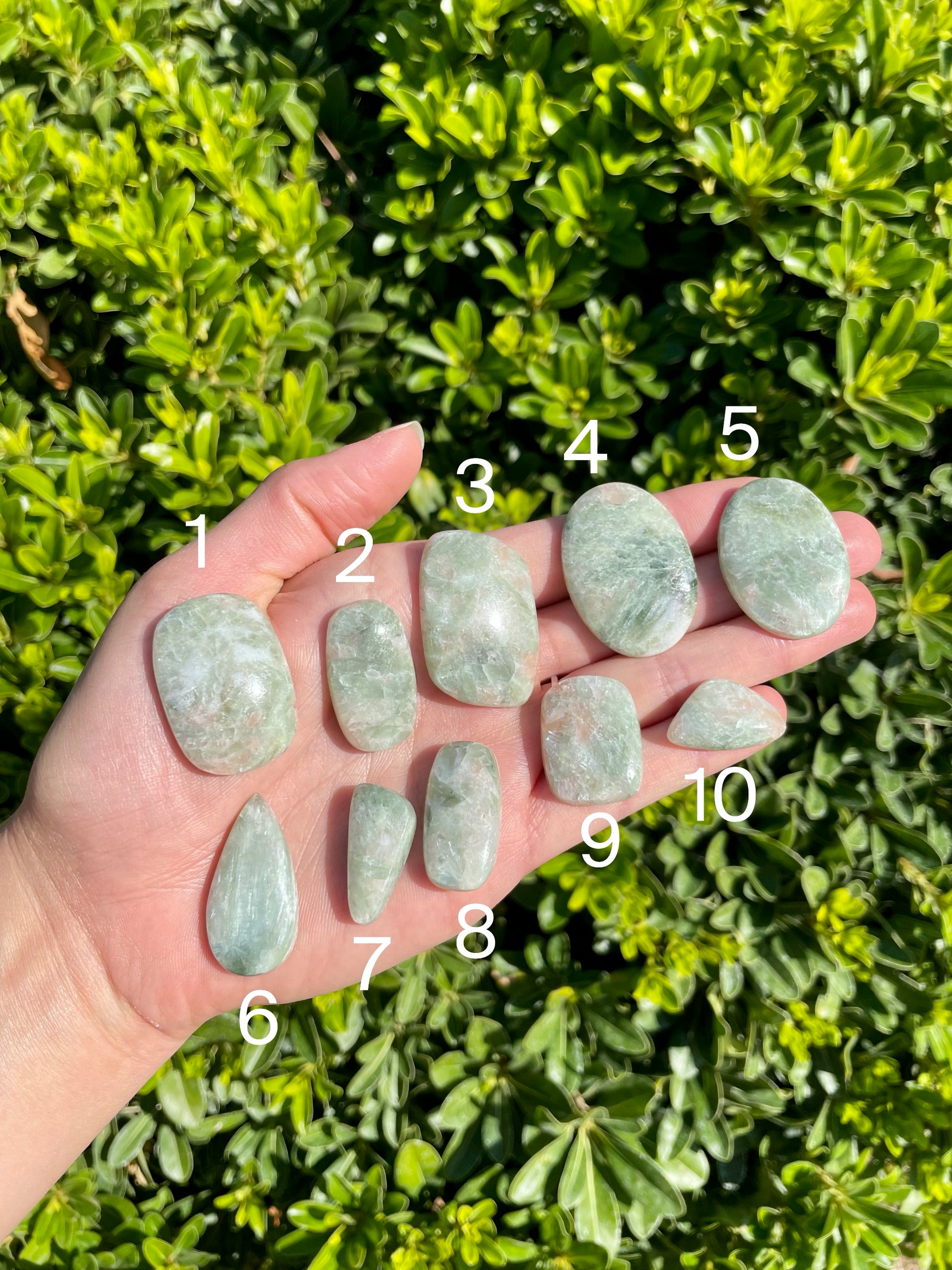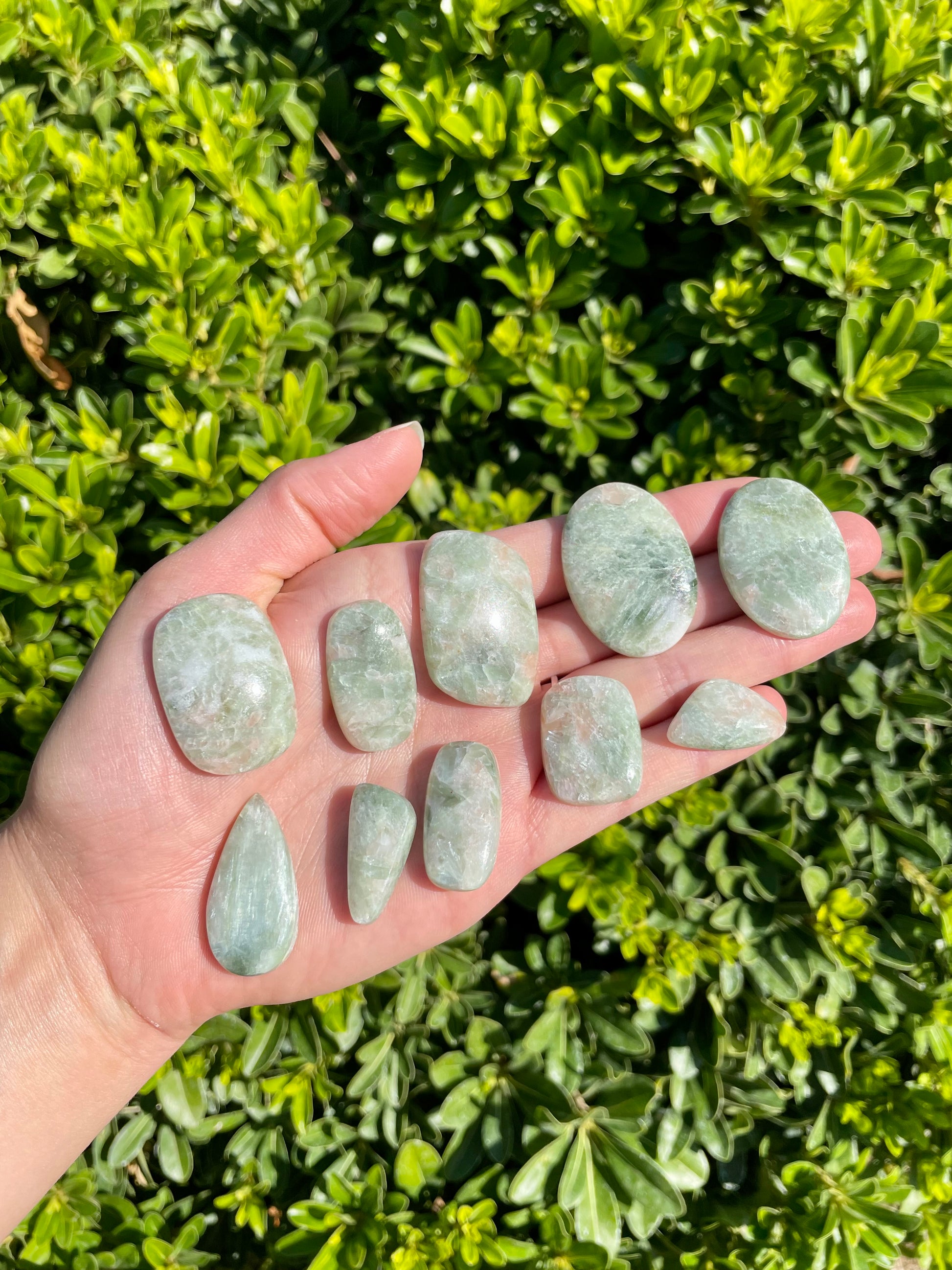 These chatoyant golden seraphinite cabochons range in sizes!